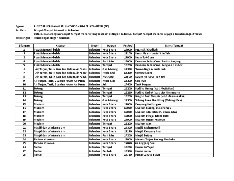 Kelantan Tarikh Operasi Nama Premis Alamat 1 Alamat 2 Poskod Bandar Negeri Latitud Longitud Status